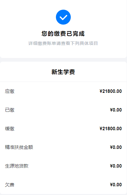 点击进入“财务缴费”阶段,在确认财务账单无误后,再点击支付。(如涉及现金缴费的同学可来校前往二级学院报到点进行缴费)