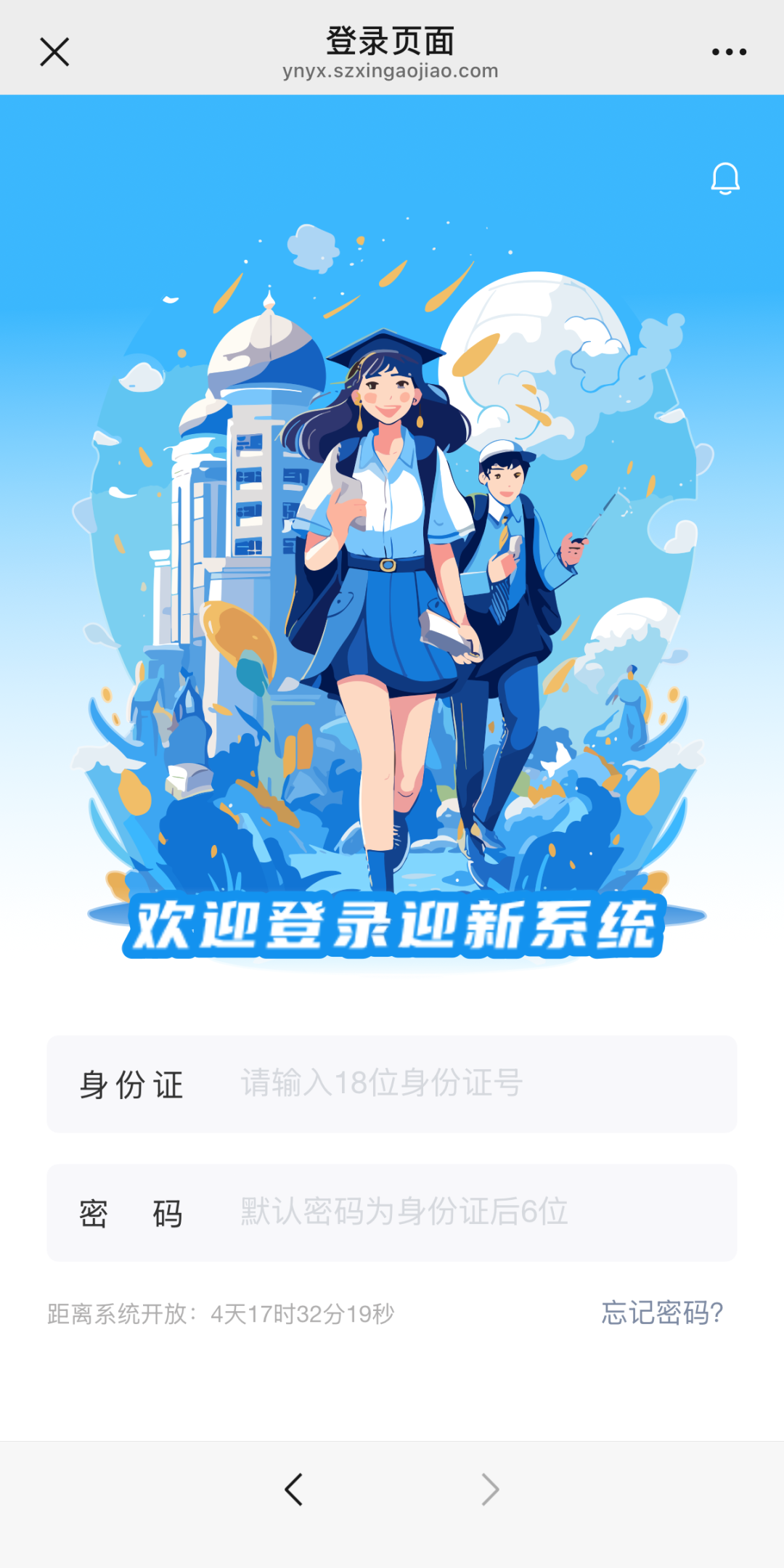 输入账号信息,账号为被录取同学本人身份证号,初次登录密码为身份证号后6位。