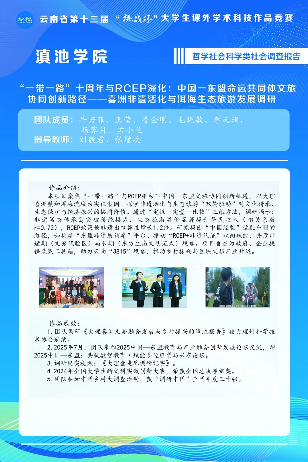 作品名称:“一带一路”十周年与RCEP深化:中国一东盟命运共同体文旅协同创新路径——喜洲非遗活化与洱海生态旅游发展调研