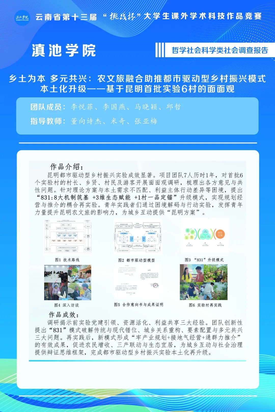 作品名称:乡土为本 多元共兴:农文旅融合助推都市驱动型乡村 振兴模式本土化升级——基于昆明首批实验6村的面面观