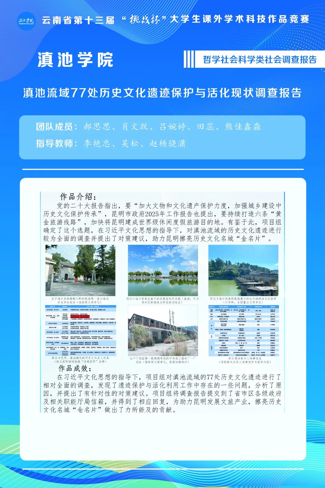 作品名称:滇池流域77处历史文化遗迹保护与活化现状调查报告