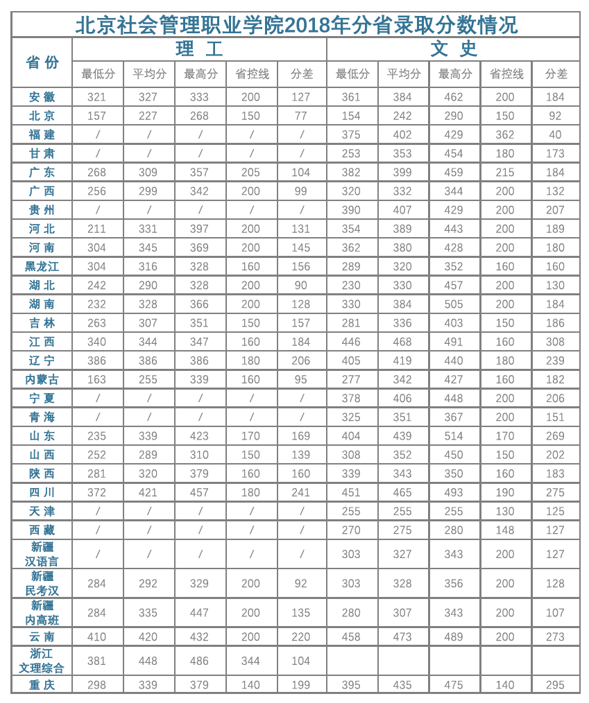 2018年各省分数线汇总表