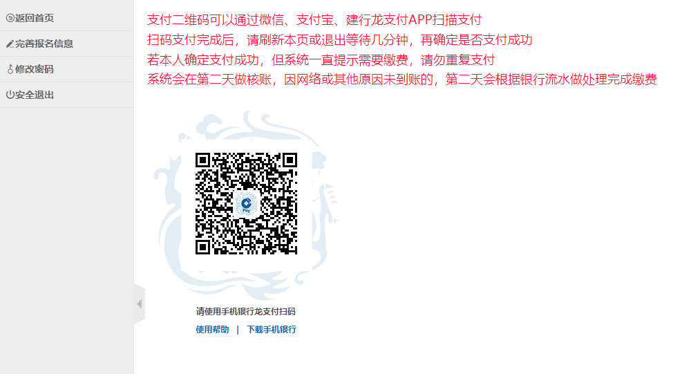 10.点击图(10)下方“去缴费”选项进入(图11),此二维码支持微信、支付宝、建行龙支付扫描支付;