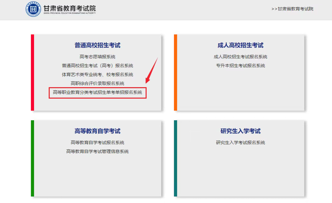 1. 考生登录www.ganseea.cn点击“网上办事大厅”选择(高等职业教育分类考试招生单考单招报名系统)进入报名界面(图1);