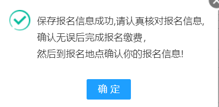 8.考生按要求填写完成后,点击最下方的“保存报名信息”选项,无误后弹出(图9);