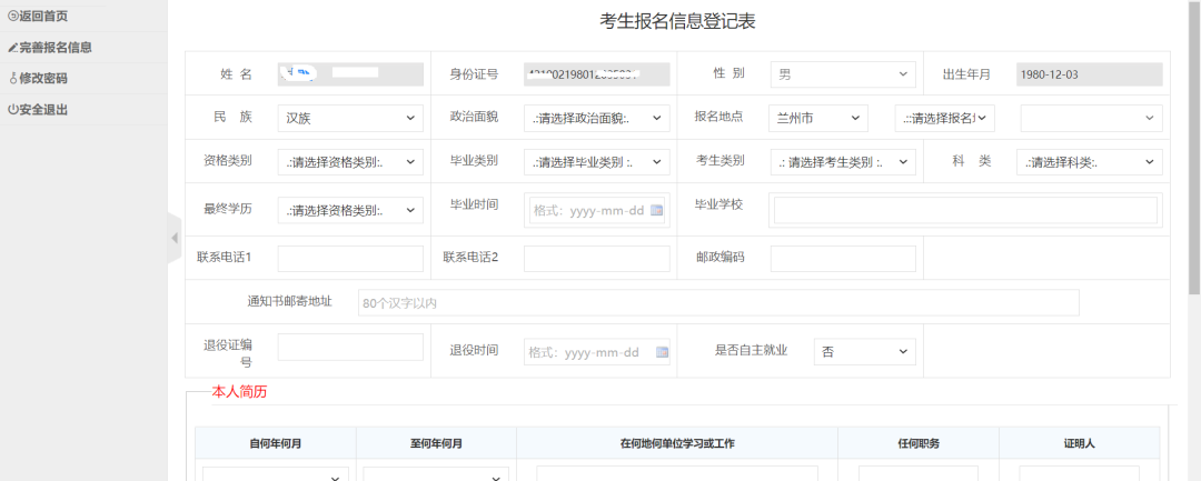 图77.点击左侧栏中“完善报名信息”选项进入(图8);