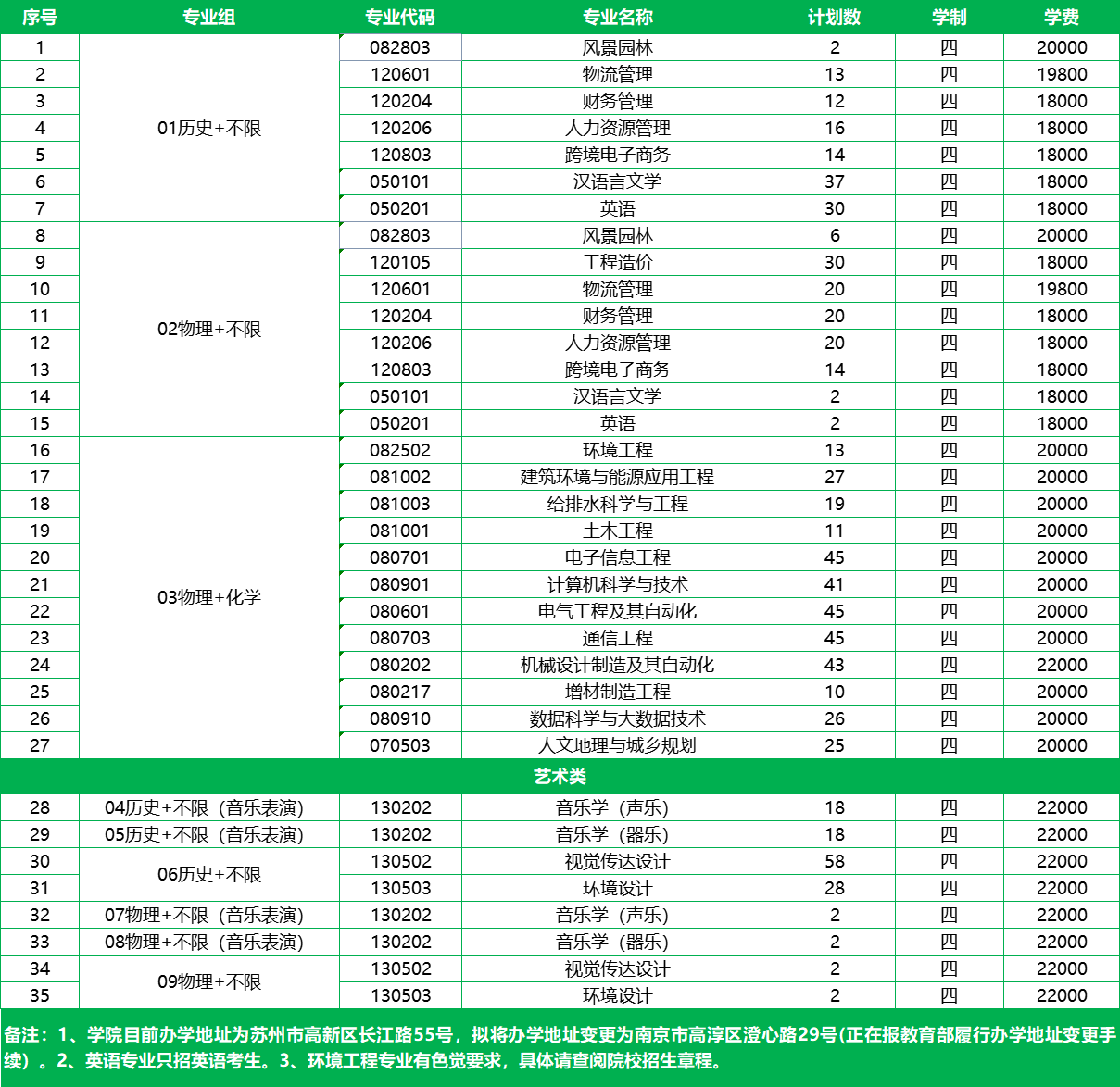苏州科技大学天平学院2025年江苏省专业分组计划及收费一览表