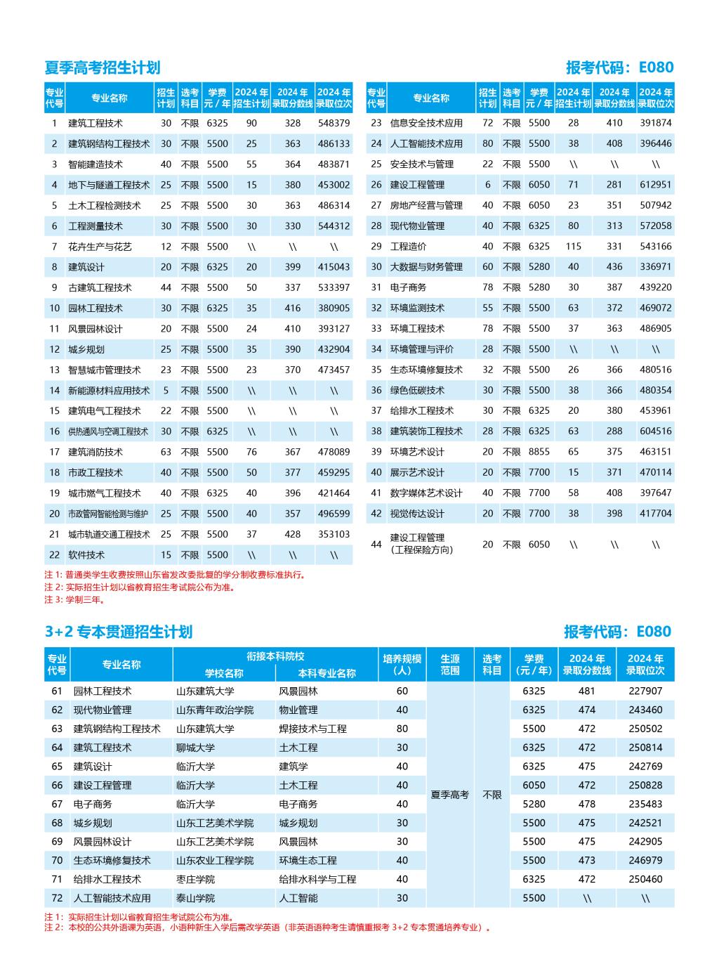 山东城市建设职业学院2025年招生计划