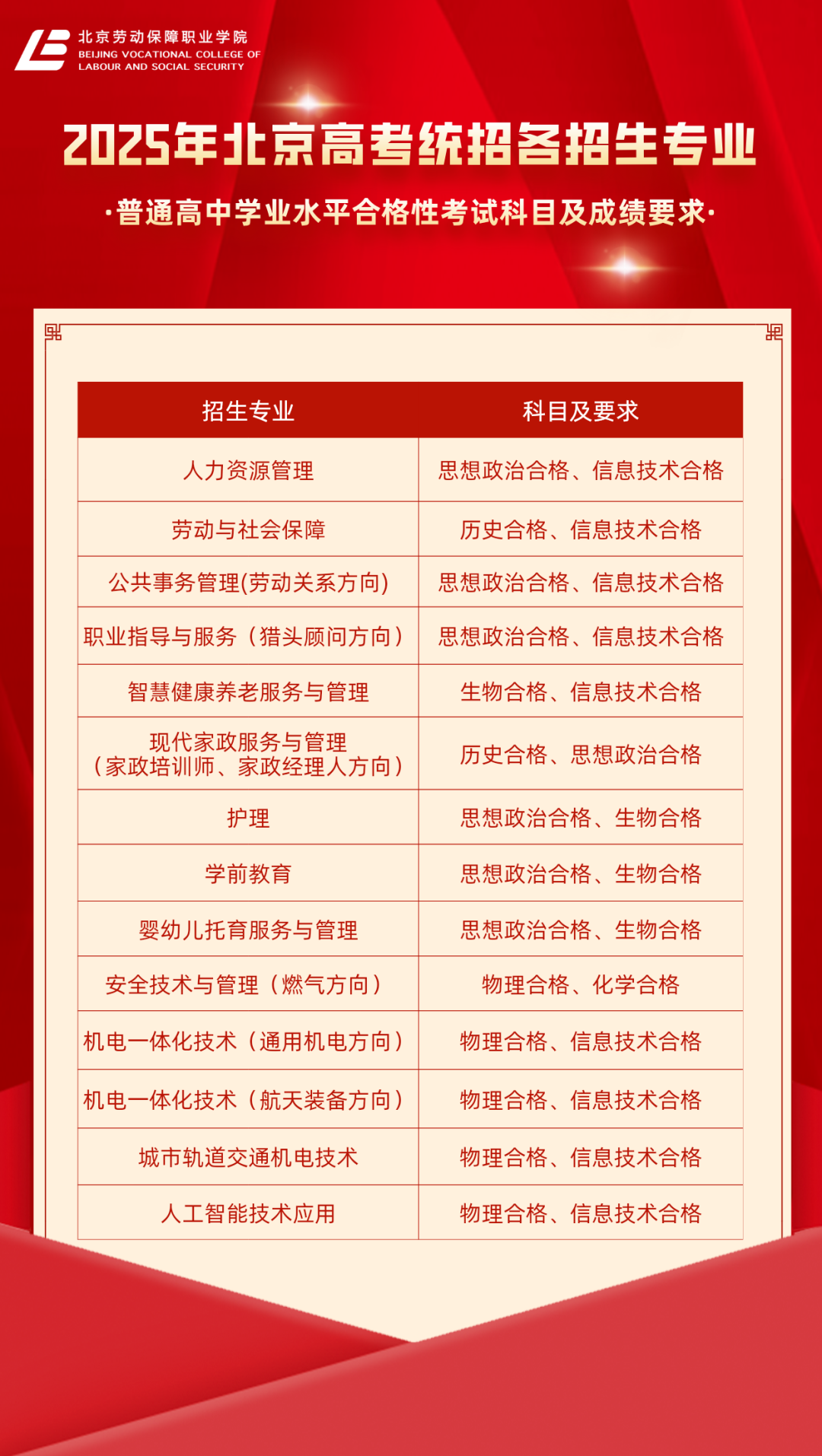 2025年北京高考统招各招生专业普通高中学业水平合格性考试科目及成绩要求
