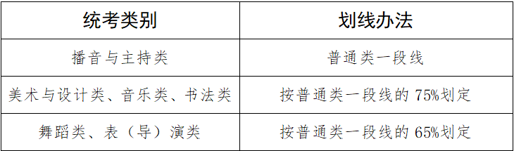 其他艺术类本科高校及专业,分艺术类别划定文化录取控制分数线,各艺术类别划线办法如下。