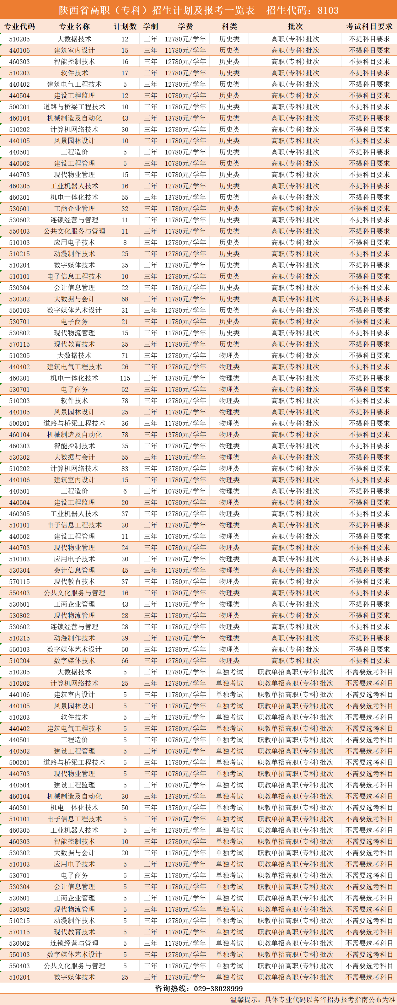 陕西省2025年招生计划(招生代码:8103)