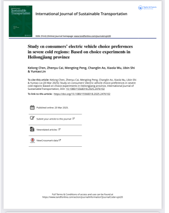 国际班学生林云涛在国际导师的指导下成功发表了一篇关于严寒地区消费者电动汽车选择偏好研究的学术论文,本次发刊是在国际权威期刊Sustainable Transportation(SCI三区的期刊,影响因子4.7)发表的一篇论文。