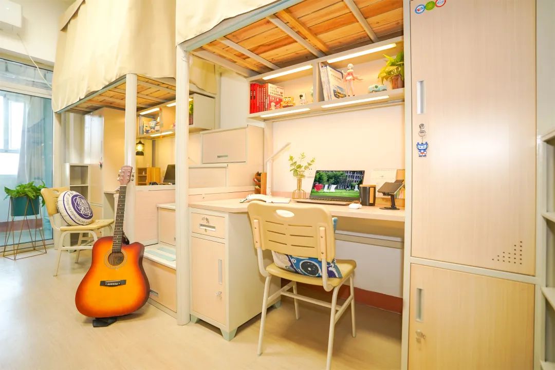 学生公寓环境优美,配套设施齐全,配有独立阳台、卫生间、空调、书桌、衣柜、饮水机、吹风机、洗衣机解决日常生活所需。公寓楼下就有食堂、超市,使校园生活更为便利。