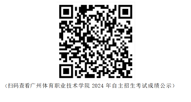 根据《关于做好2024年高等职业院校自主招生工作的通知》及广州体育职业技术学院招生工作相关规定,现公示我院2024年自主招生(含退役军人现代学徒制专项试点招生、面向高中生自主招生、面向中职生自主招生)考试成绩(见附件),公示期自2024年5月20日17:00至5月23日17:00。如对成绩有异议,可在公示期内(每天上午8:30-12:00,下午14:30-17:30)致电我院招生办(联系电话:020-85603035)申请复查,逾期不再受理。