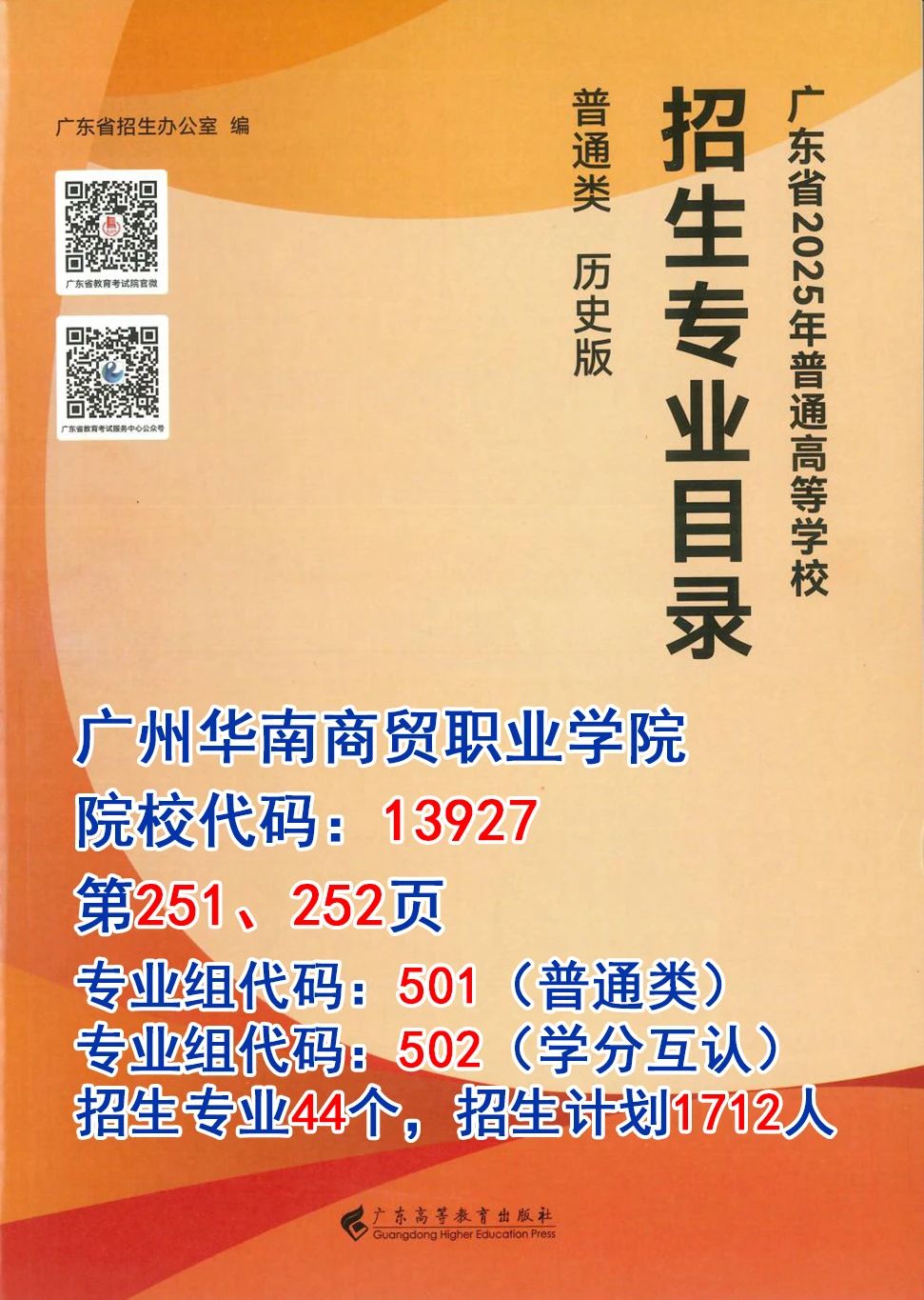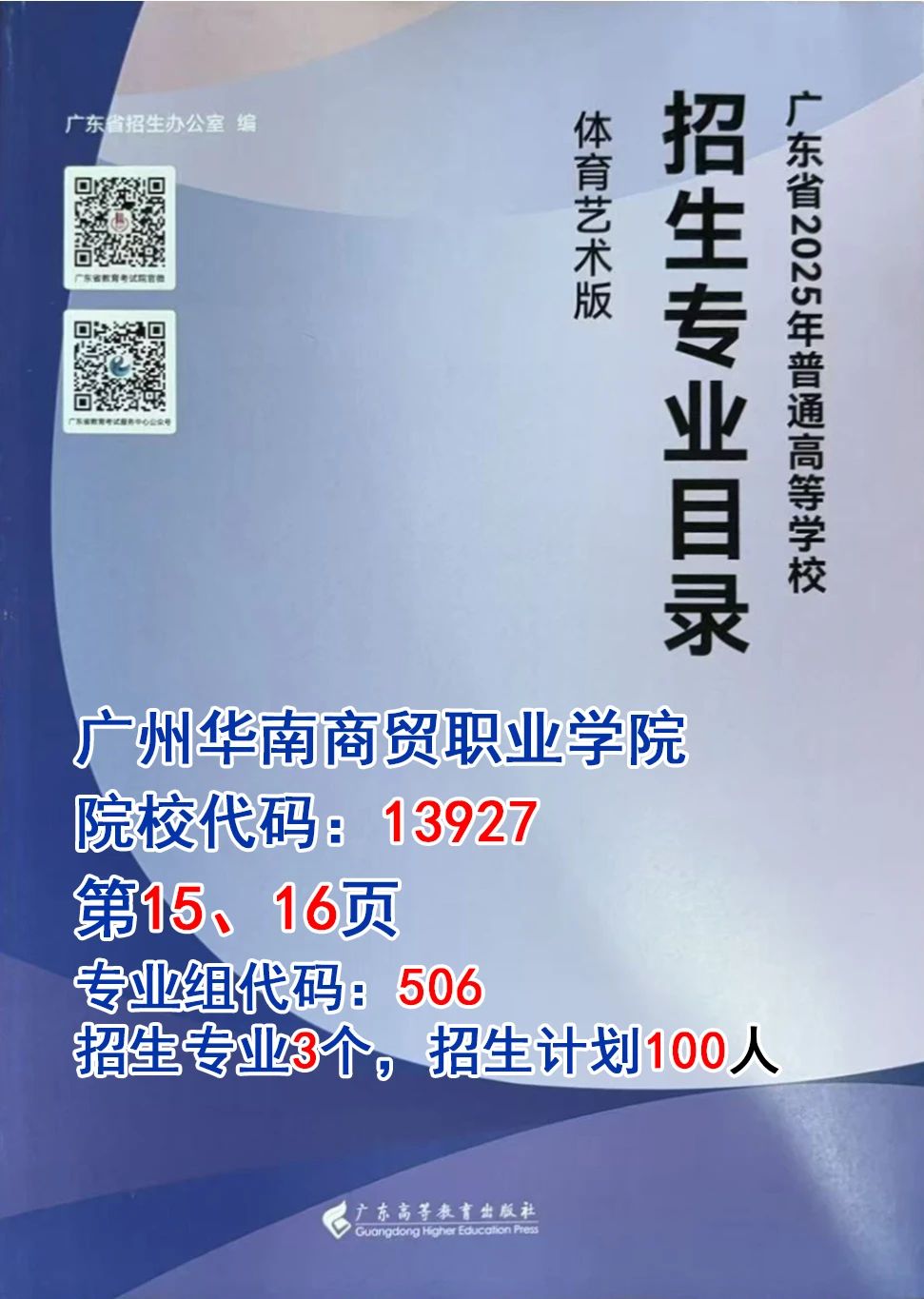 广东省2025年普通高等学校专·业·目·录1、物理类HNBC2、历史类HNBC3、体育类HNBC4、美术与设计类HNBC广州华南商贸职业学院投·档·参·考往年情况我校2024年夏季高考投档情况(仅供参考)志愿填报首选广州华南商贸职业学院招生代码13927