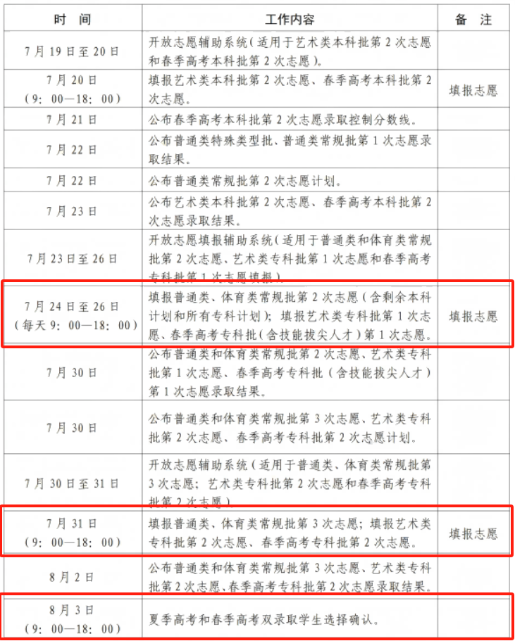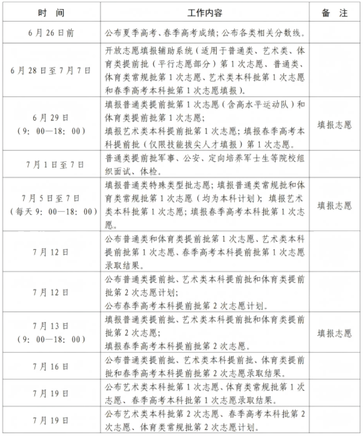 山东省2025年普通高校招生录取工作进程表