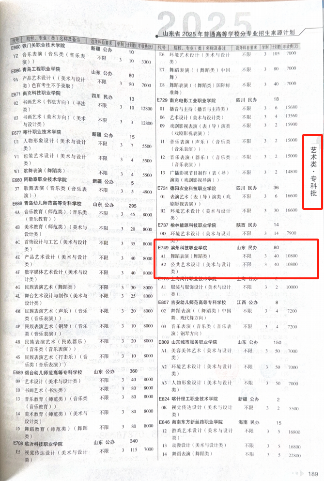 艺术类·专科批 | 189页 | |