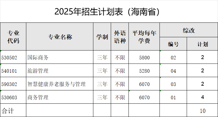海南省批次:专科批
