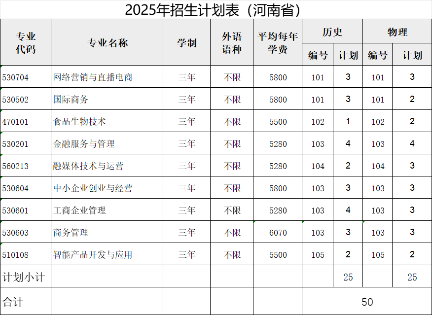 河南省批次:专科批