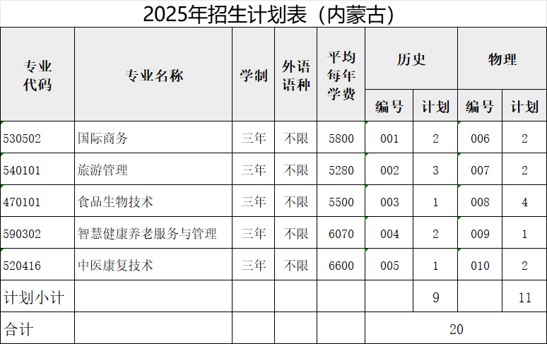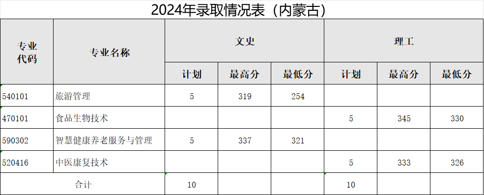 内蒙古批次:专科批