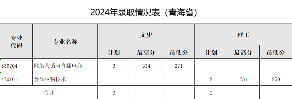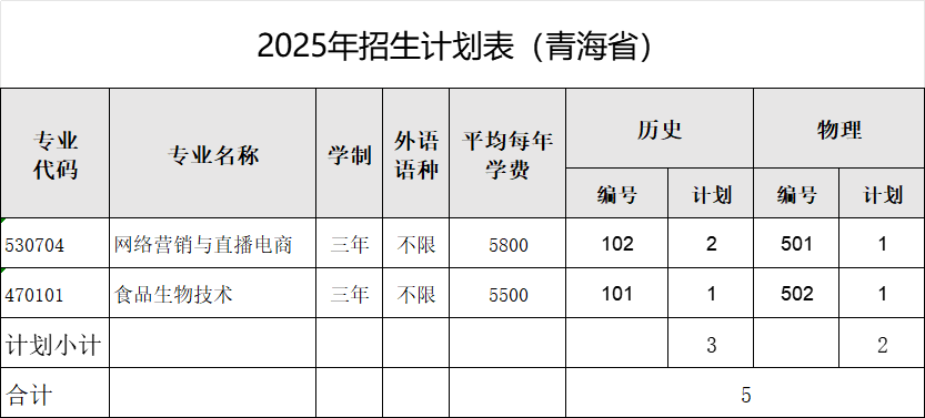 青海省批次:专科批