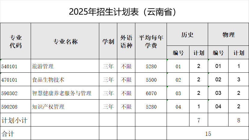 云南省批次:专科批