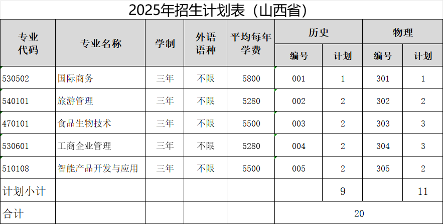 山西省批次:专科批