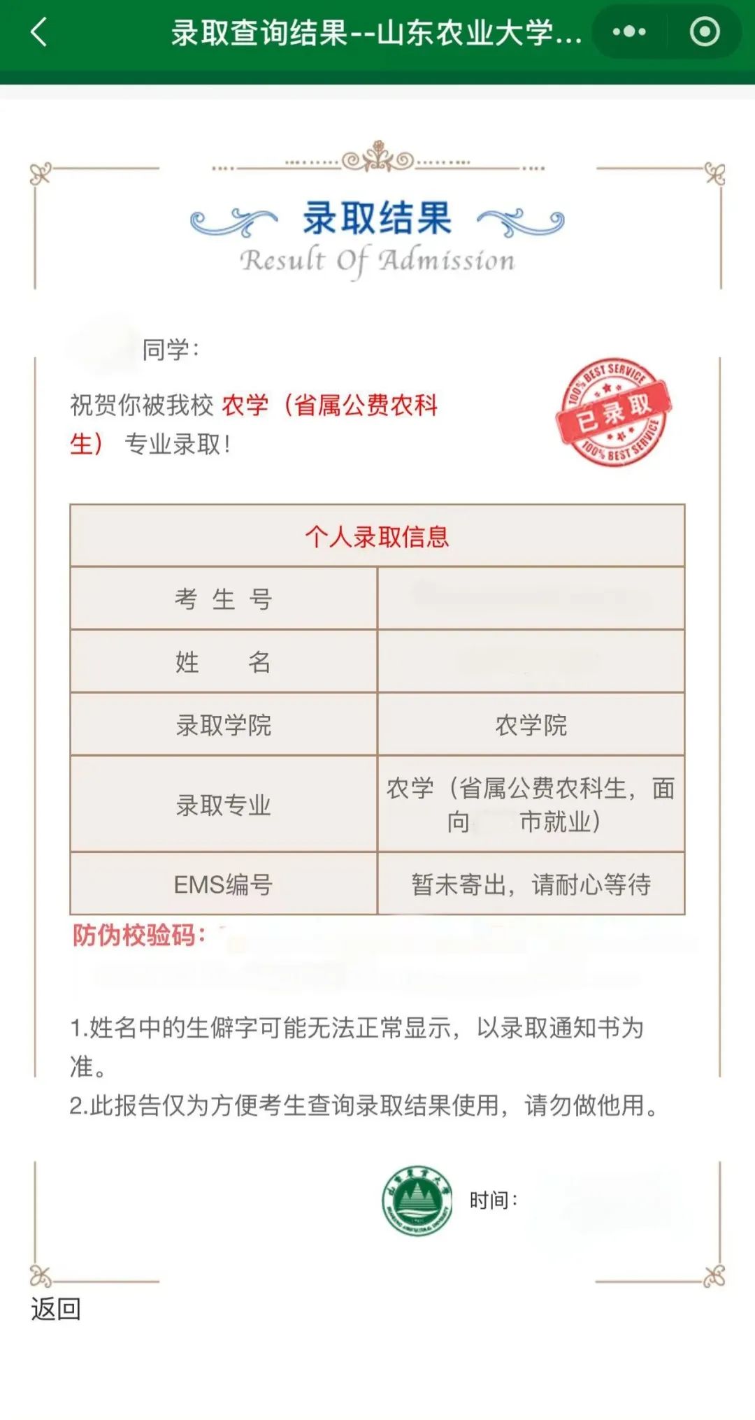 建议大家通过本省教育考试院(招生办)公布的正规渠道或学校官方公布的查询方式,获取录取相关信息。