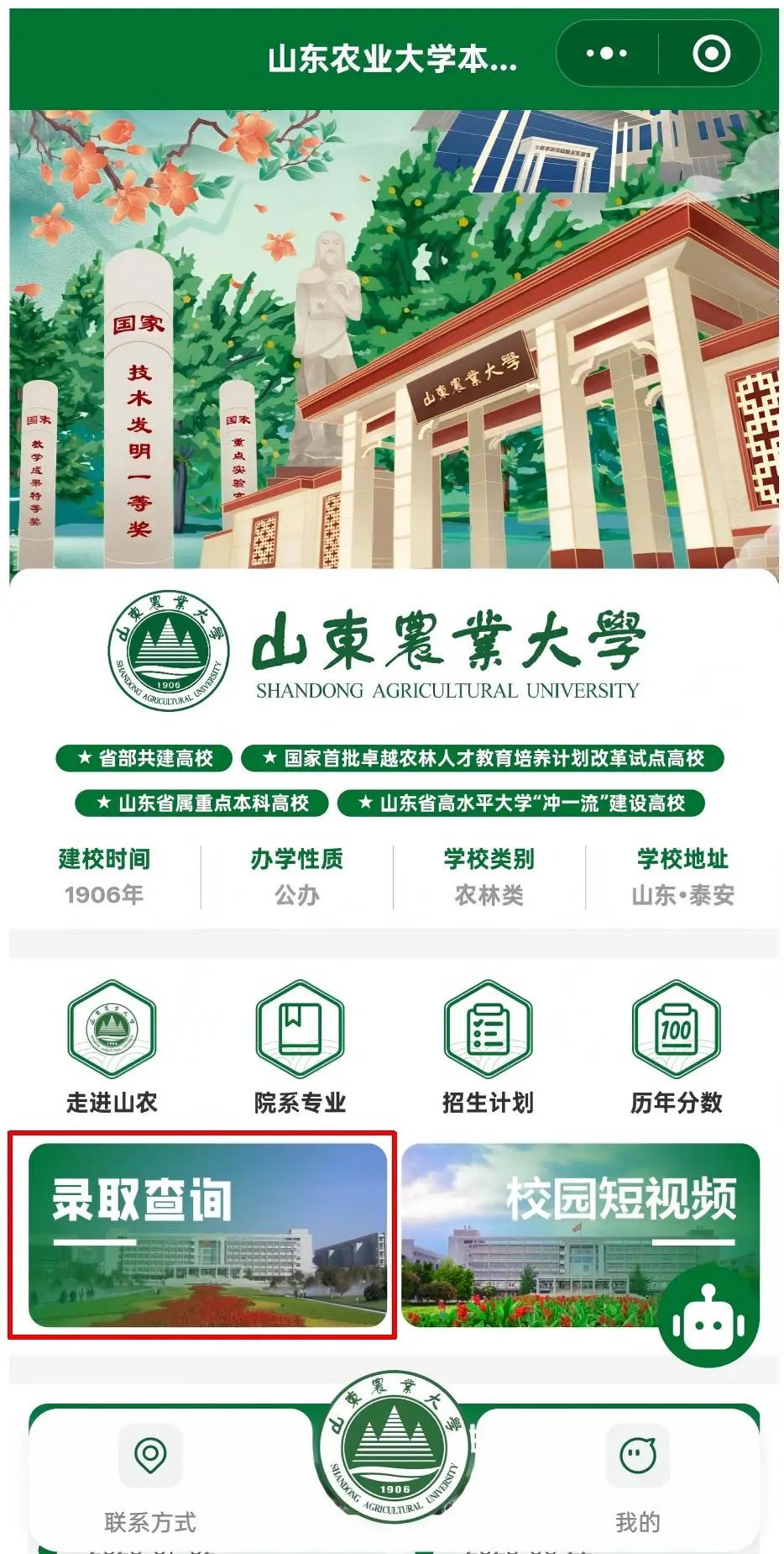 (1)扫码进入“山东农业大学本科招生办公室”微信小程序。