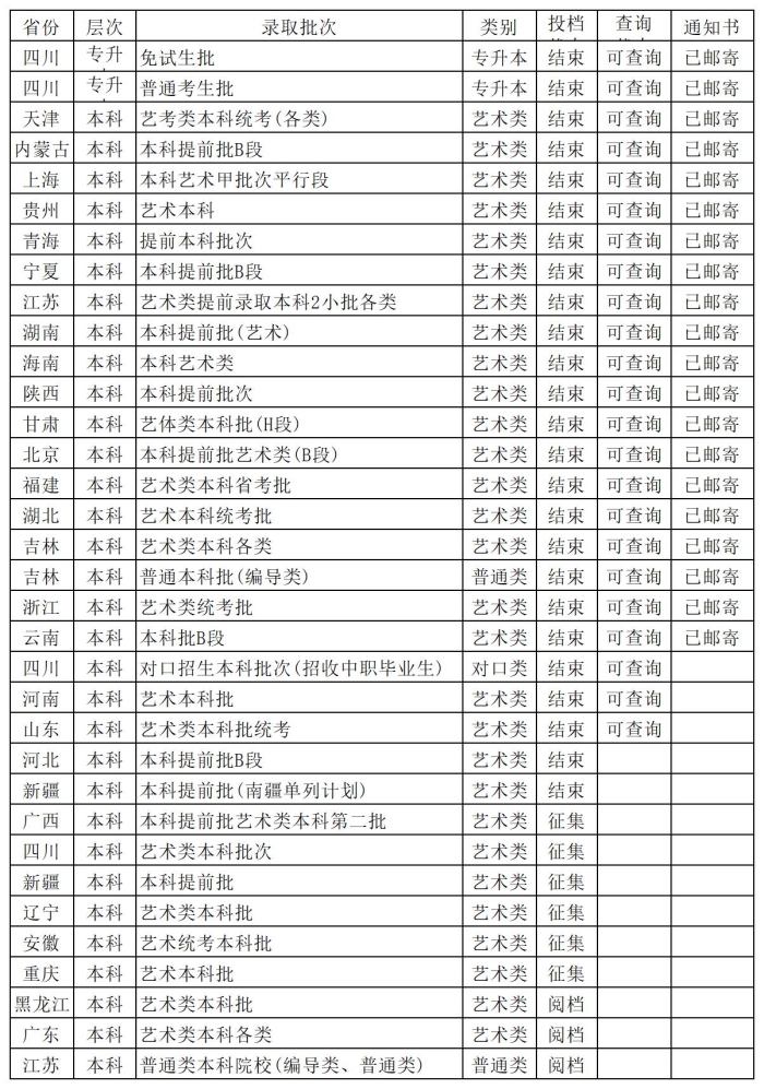 四川传媒学院2025年录取工作进展状态(持续更新)