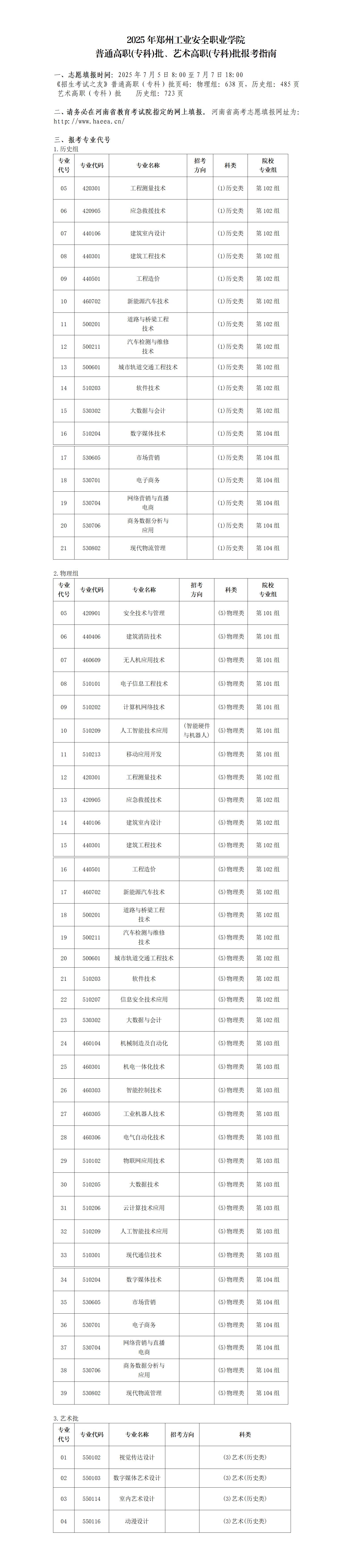 2025年郑州工业安全职业学院 普通高职(专科)批、艺术高职(专科)批报考指南