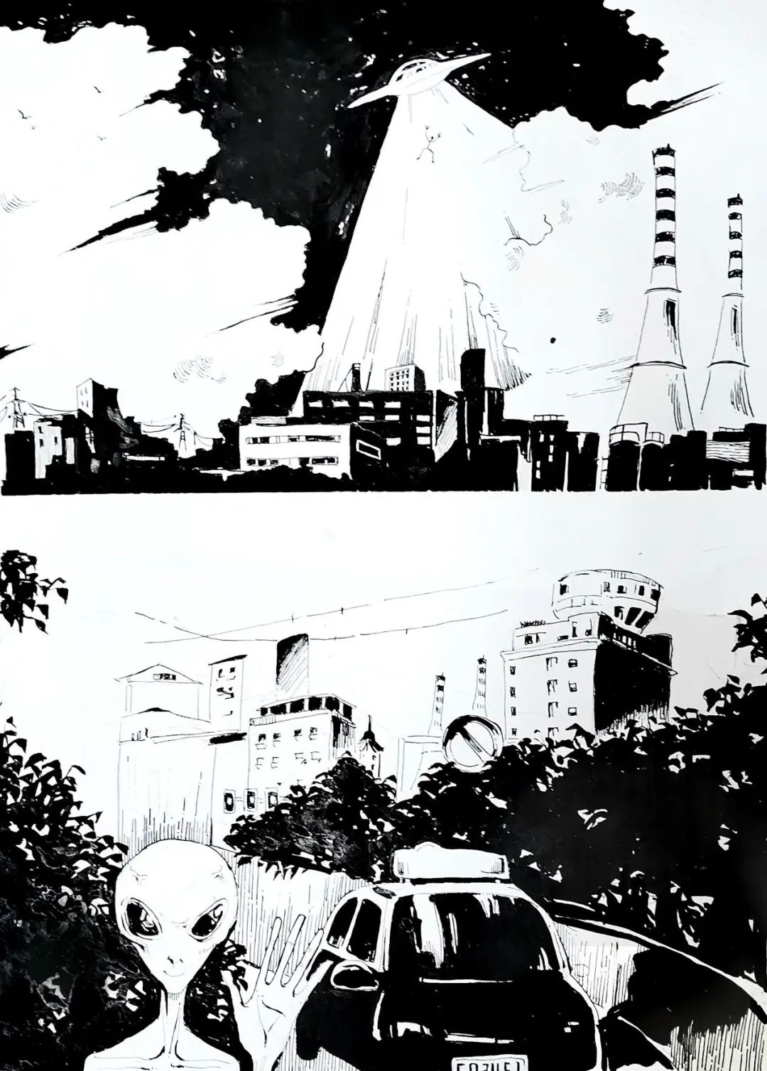 《外星人袭来》26cm×37cm×2 陈秋竹