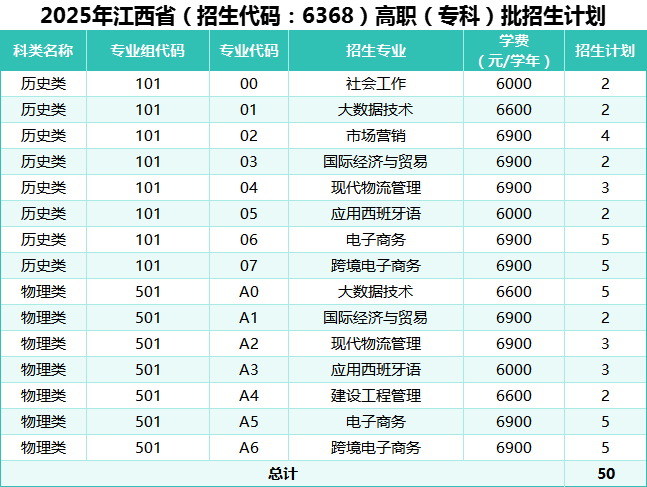江西省招生代码:6368