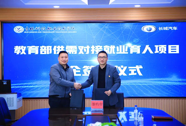 长城汽车股份有限公司校企合作总监崔飞虎与吉林科技职业技术学院副院长赵宇代表双方正式签署了校企合作协议,标志着吉林科技与长城汽车在人才培养、课程共建、实习实训、就业服务等领域的深度合作全面展开。