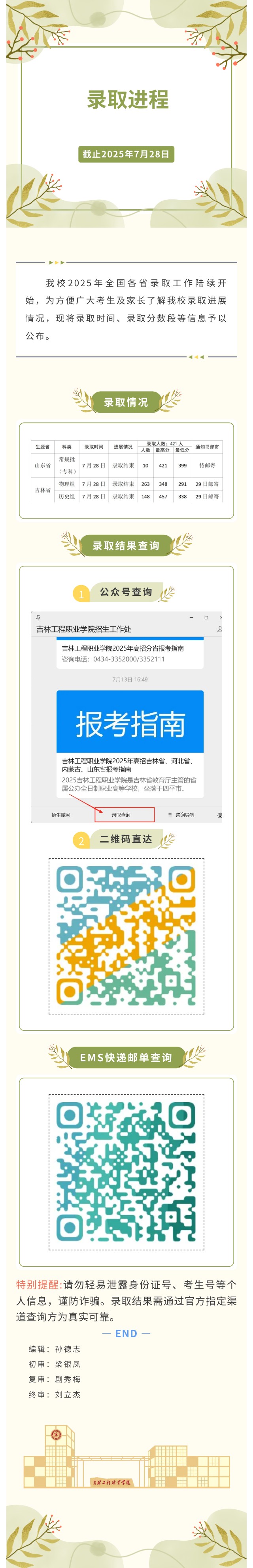 吉林工程职业学院2025年高招录取进程-7月28日