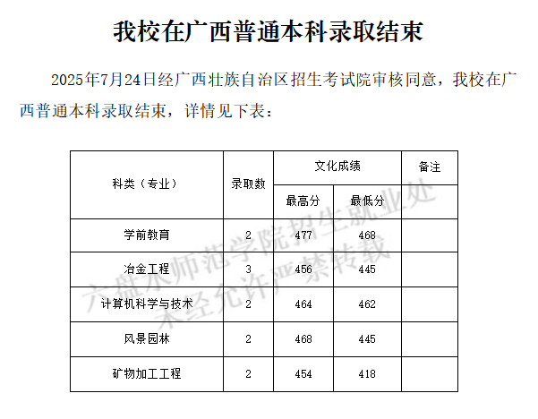 我校在广西普通本科录取结束