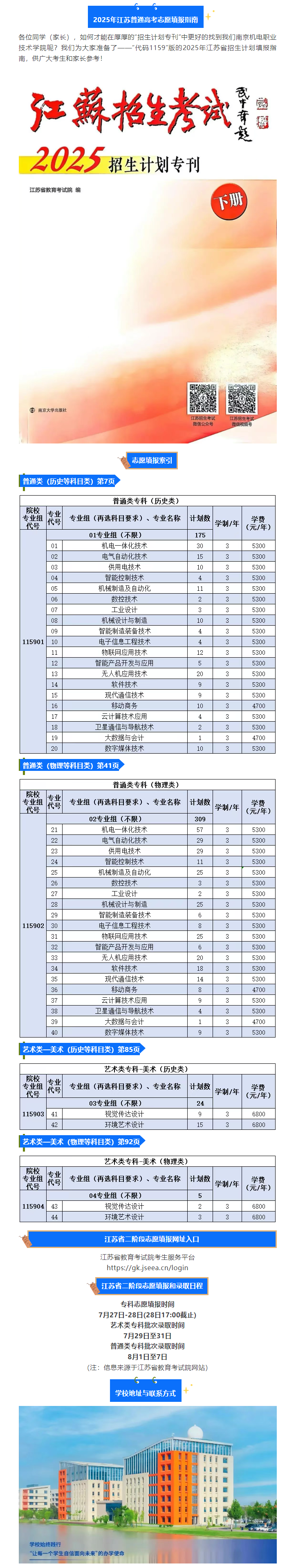 南京机电职业技术学院2025年江苏普通高考志愿填报指南