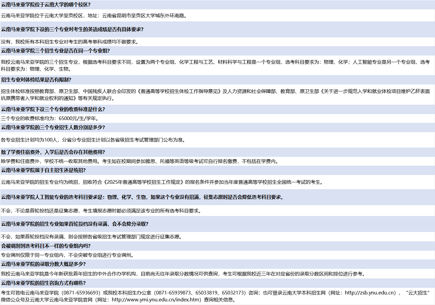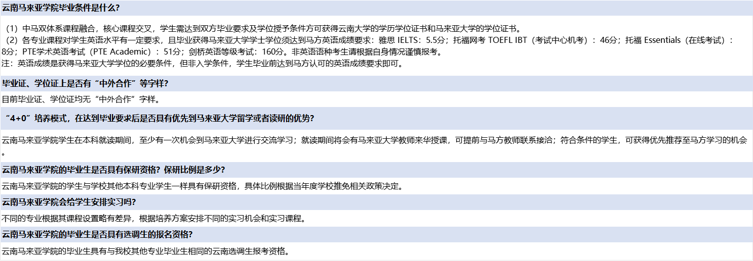 针对近期考生关于云南大学云南马来亚学院的咨询情况,我校整理了热门问答合集,