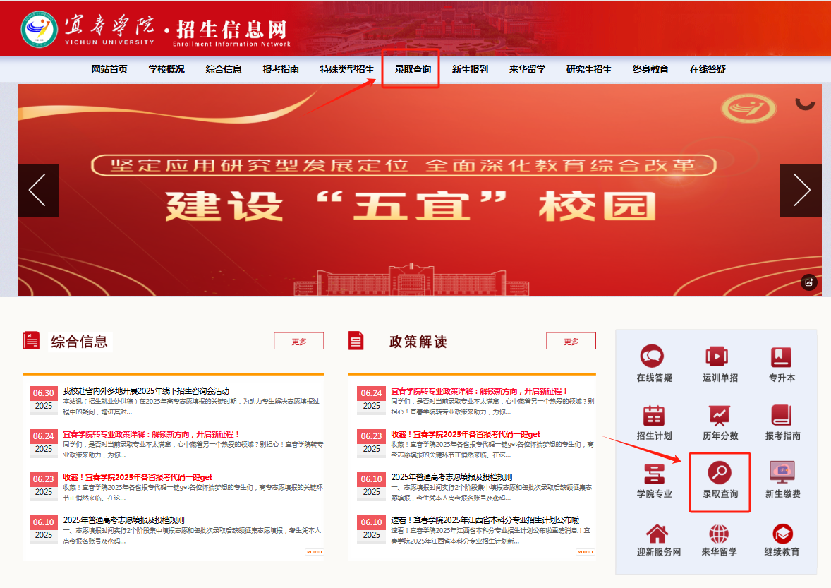 (长按或手机扫描查询录取结果) 以上数据持续更新中请耐心等待查询仅供参考以省考试院公布信息为准 方法二:登录招生信息网查询 登录宜春学院招生信息网(网址为http://zsw.jxycu.edu.cn/zsw/),点击“录取查询”栏目的“普通高考录取查询”(或首页右侧的“录取查询”图标),打开查询页面后输入“考生姓名”和“身份证号码”即可查询。