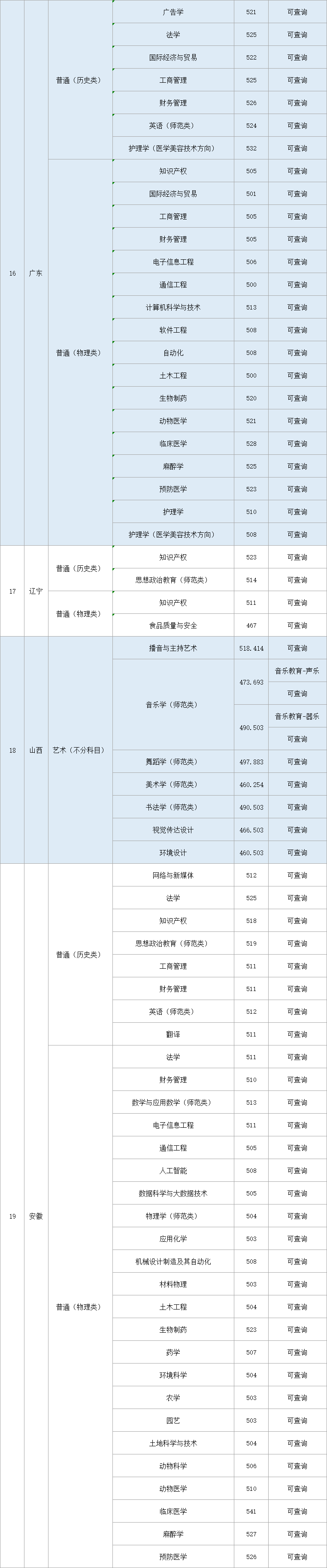 | 7月20日至7月28日,我校完成了福建普通类、湖南普通类、湖南体育类、河南普通类、贵州普通类、湖北普通类、海南普通类、广西普通类、内蒙古普通类、甘肃普通类、江苏普通类、河北普通类、重庆普通类、山东普通类、云南普通类、江西普通类、江西体育类、江西艺术类、浙江普通类、广东普通类、辽宁普通类、山西艺术类、安徽普通类的录取工作,具体录取情况如下: