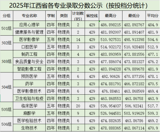 牡丹江医科大学2025年江西省各专业录取分数公示(按投档分统计)