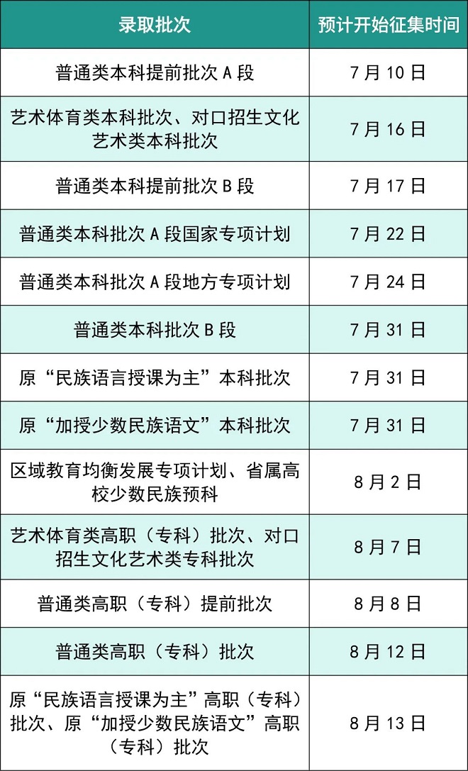 2025年预计开始征集志愿时间