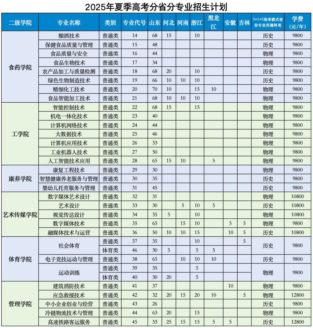 招生省份:山东、河北、河南、浙江、黑龙江、安徽、吉林