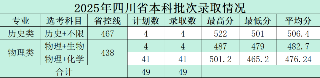 目前,我院2025年四川省本科批次录取工作顺利结束,物理类最低录取分数高四川省省控线27分,历史类最低录取分数高四川省省控线34分。现将有关情况公告如下。