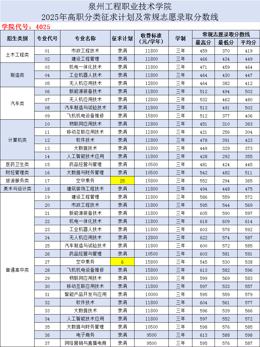 空中乘务专业面向中职旅游服务类考生剩余计划25人,面向普通高中生类考生剩余计划6人,欢迎各位考生报考。