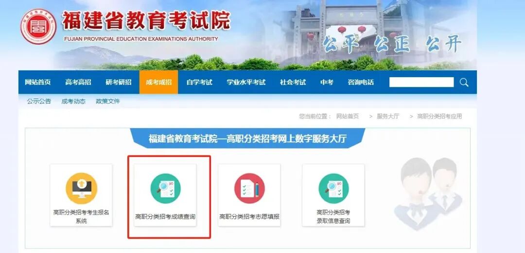 考生可登录省教育考试院网站(www.eeafj.cn)“数字服务大厅---高职分类招考---高职分类招考成绩查询”栏目进行查询。
