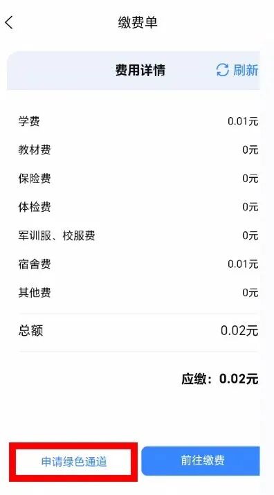 绿色通道缴费流程:完成所有报到流程后点击“申请绿色通道”,在1000-20000元区间内自选贷款金额,上传国家开发银行生源地信用助学贷款受理证明、本人及家长身份证正反面,提交申请后等待学校审核。审核通过后,缴纳贷款覆盖后的剩余费用即可。