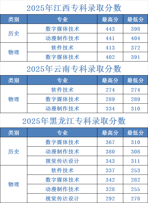 录取分数如下表: