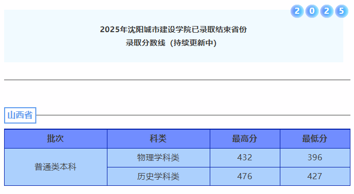 沈阳城市建设学院2025年招生录取进程(8月8日)