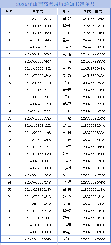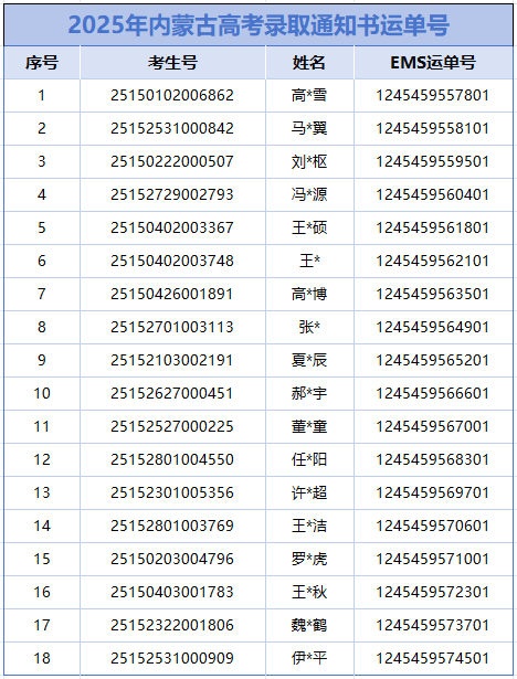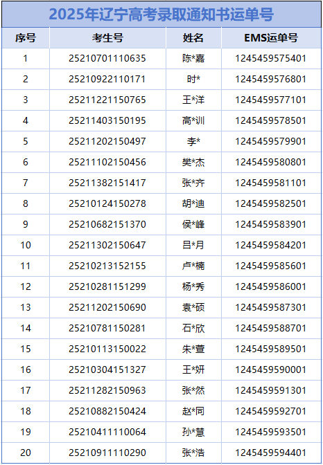 最近寄送 | 2025年内蒙古、辽宁、河北、山西录取通知书单号请查收!